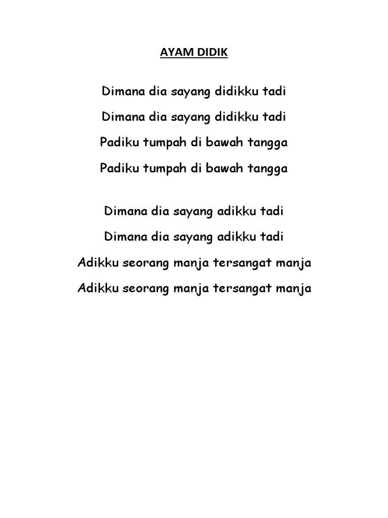 Lirik Lagu Ayam Didik Tahun 2 Pdf